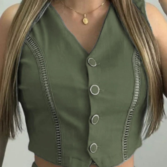 Atenção: Essas medidas da Cintura são da Cintura Inferior pois o conjunto tem cintura alta, o decote é em V e não tem mangas