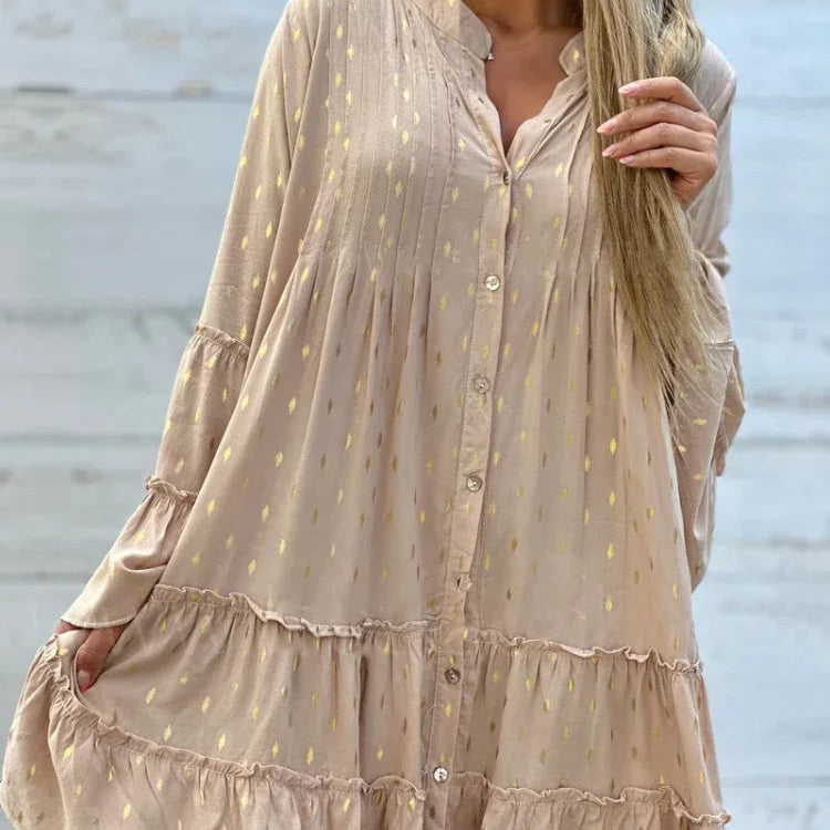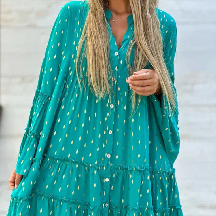 Esta saída de praia une elegância e charme com mangas longas que proporcionam proteção eficaz contra o sol. Ideal para o verão, combina estilo sofisticado e conforto, permitindo que você aproveite os dias ensolarados com segurança e requinte.