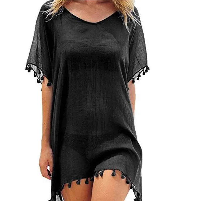 Esta saída de praia é perfeita para curtir um dia de sol na piscina ou na praia. Com seu charme e conforto, ela é ideal para te acompanhar nas tardes mais quentes. Além disso, pode ser usada como vestido, trazendo ainda mais versatilidade para seu guarda-roupa de verão. Aproveite o calor com estilo e praticidade.